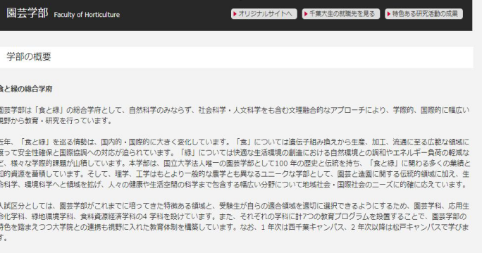 只有千葉大學(xué)是唯一一個(gè)開設(shè)了園藝學(xué)研究科的國立大學(xué),所以千葉大學(xué)的這個(gè)研究科下面所設(shè)的專業(yè)是非常齊全的,地位也非同一般。但競爭激烈,要求很高。其中,千葉大學(xué)的景觀教授三谷徹,是享譽(yù)世界的景觀大師。