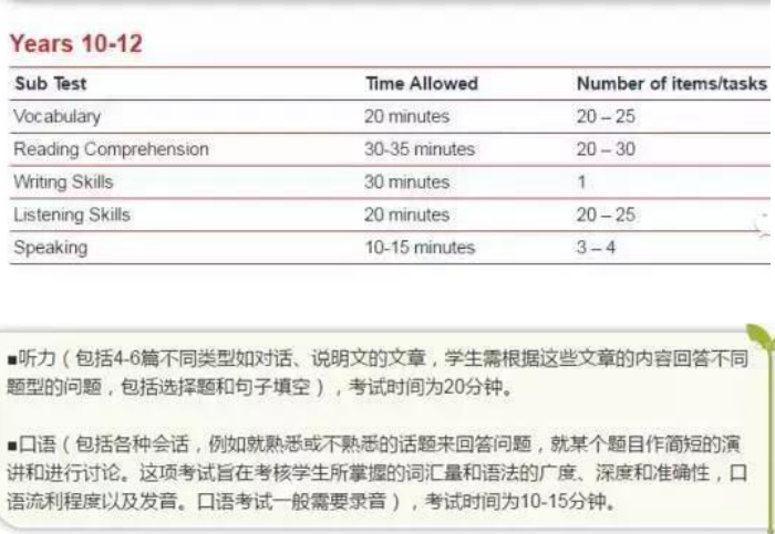 其他低年級(jí)英語(yǔ)考試比照10-12年級(jí)考試題型,但是會(huì)參照相應(yīng)年級(jí)學(xué)生的知識(shí)背景有針對(duì)性的出題目。