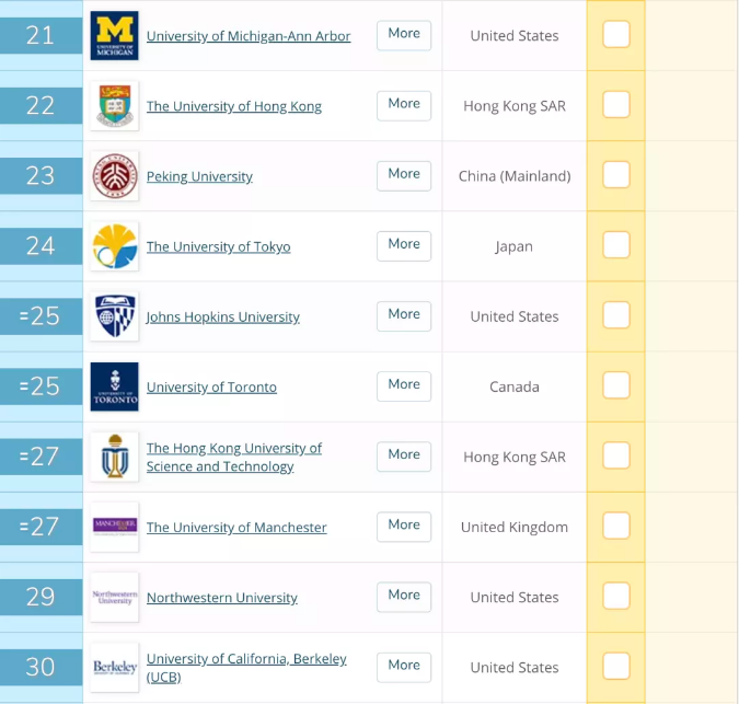 以上就是小編給大家分享的更多關(guān)于2021QS世界大學(xué)綜合排名的相關(guān)內(nèi)容,如有其它問題可以點擊頁面的咨詢框,會有專業(yè)的老師為你免費解答?;蛘叱掷m(xù)關(guān)注http://hongyan.net.cn/