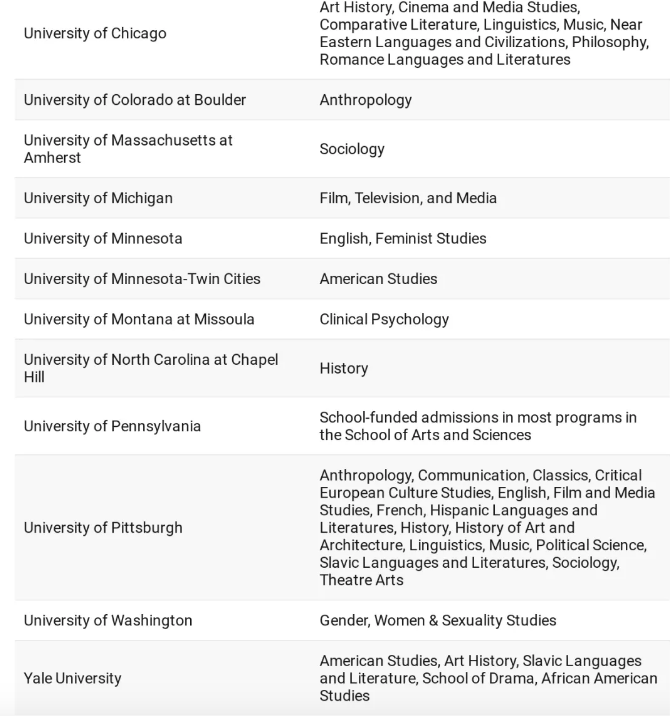此外,康奈爾大學(xué)和北卡羅來(lái)納大學(xué)教堂山分校的歷史專業(yè),加州大學(xué)圣塔芭芭拉分校和麻省大學(xué)阿默斯特分校的社會(huì)學(xué)專業(yè)也暫停了研究生招生。