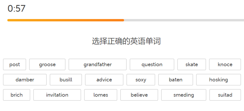 3. 選出正確的單詞,此題為兩種模式,一種是從一堆單詞中挑出正確拼寫;第二種是給出9個(gè)音頻聽,選出正確的讀音,要小心的是,如果選錯(cuò)了還會(huì)倒扣分(注意:?jiǎn)卧~的變化形態(tài),警惕那些看著正確,但是差一,兩個(gè)字母之類的)