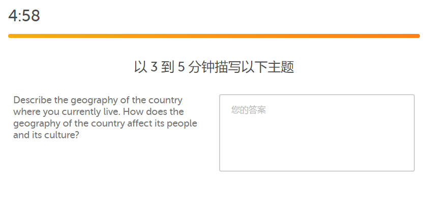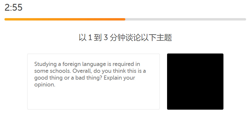 9. 大口語題,題目二選一,30秒鐘選擇,還是仔細(xì)先想想有什么可說的再選;盡可能多說一些,別1分鐘就提交了,但也注意控制下收尾(建議:每個(gè)人語速不同,可以先自己錄下看3分鐘大概得說多少合適)