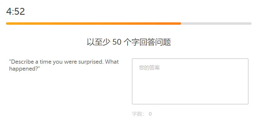 不評(píng)分部分:視頻面試和寫作樣本,測(cè)試者需要在兩個(gè)提示中選一個(gè)回答,時(shí)長(zhǎng)約10分鐘