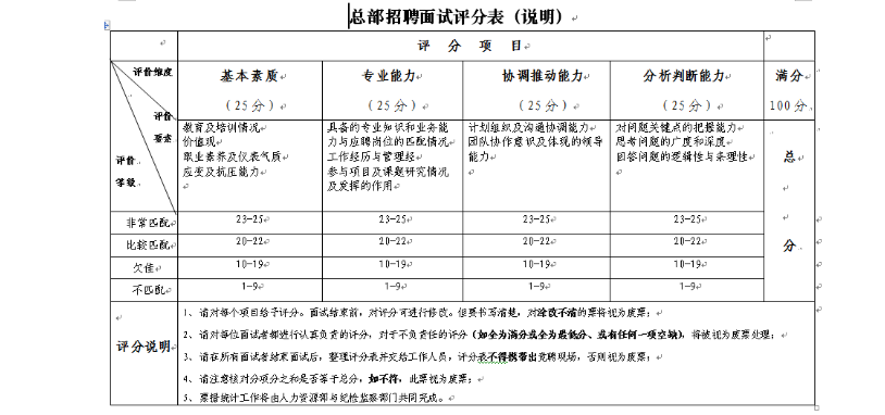 500強央企國企面試評分標(biāo)準(zhǔn)(舉例)